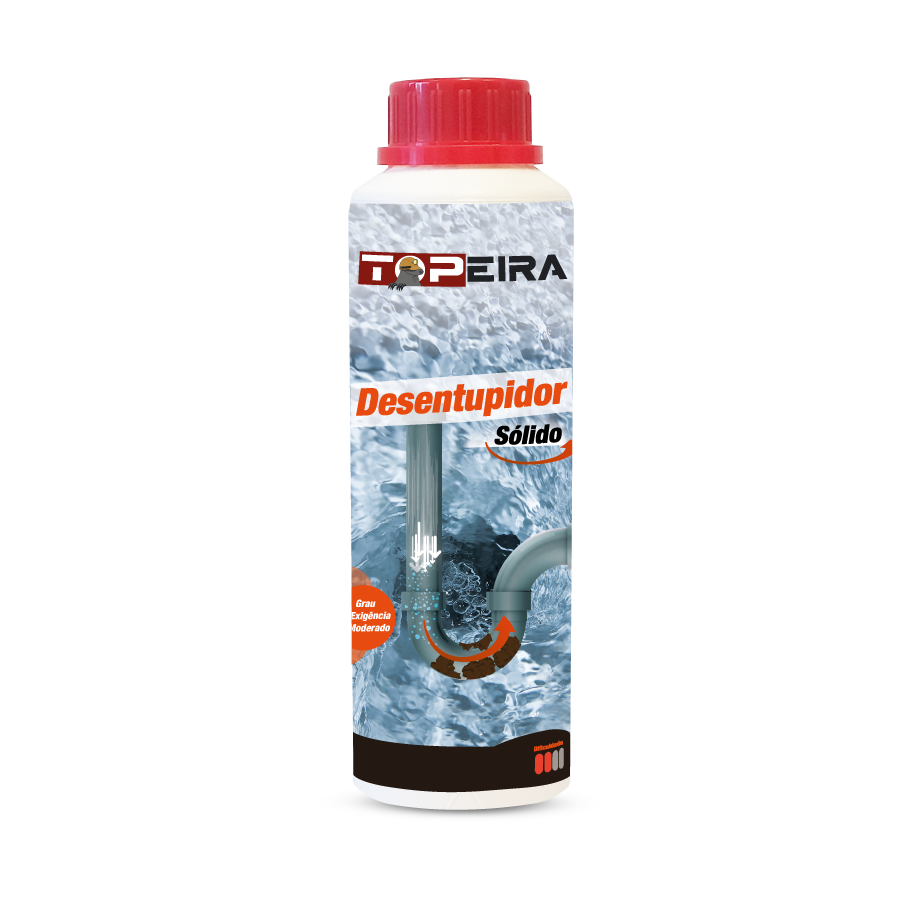 Certifique-se que a entrada do cano está bem limpa, de modo a facilitar a entrada do produto. Em seguida despeje água fervente, assim evita que o granulado se agarre ao cano. Coloque na entrada do cano uma colher de sopa de Desentupidor de Canos Sólido Topeira e por fim verta bastante água fervente, sempre com muito cuidado de modo a evitar salpicos.